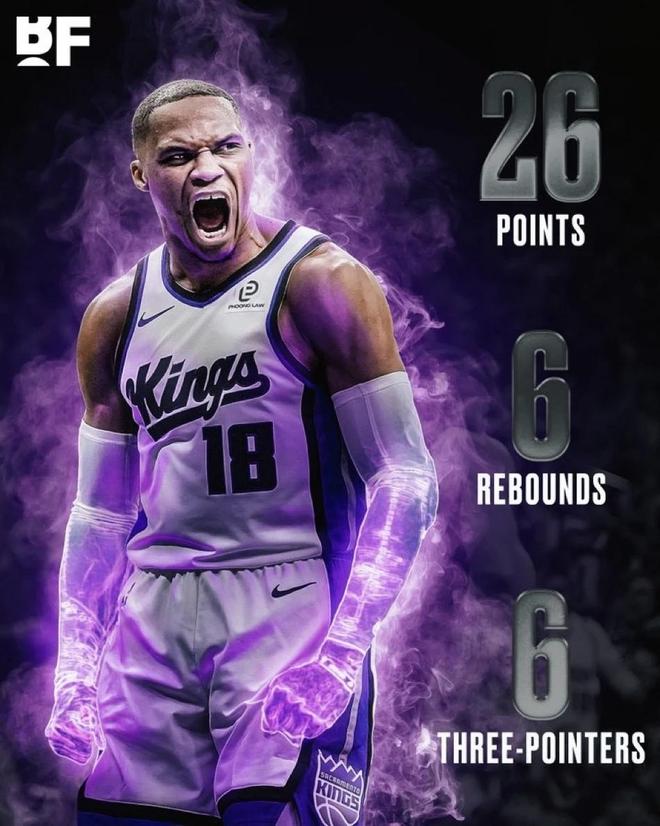 最让人惊喜的还要数威少,国王对阵奇才的比赛,37岁的“神龟”上演了梦回巅峰的戏码。谁能想到,拿着260万底薪的威少,居然在这场比赛里解锁了三分技能包,面对老东家杀红了眼。首发出战31分钟,14投9中,其中三分球9中6,命中率66.7%,狂砍26分2篮板6助攻1抢断,正负值+29冠绝全场!要知道威少生涯三分命中率才30.5%,上赛季在快船更是低到29.8%,上一次单场命中6记三分还是7年前在雷霆的时候,时隔这么久再次上演这样的神迹,直接让国王主场球迷嗨翻了天。比赛末节奇才眼看就要追近比分,把分差缩小到14分,威少站了出来,连续两记致命三分直接浇灭了对手的反扑势头,那霸气的庆祝动作,仿佛在说“关键时刻还得看我威震天”。更难得的是,现在的威少早已不是当年那个只靠身体冲击篮筐的愣头青,他学会了合理分配球权,减少了盲目持球强攻,增加了无球跑动和接球三分,这种转型让他成了国王的更衣室领袖。国王能豪取四连胜,从西部垫底一路逆袭,威少绝对是最大功臣,拿着底薪打出千万级别的表现,这样的逆袭故事简直太励志了!