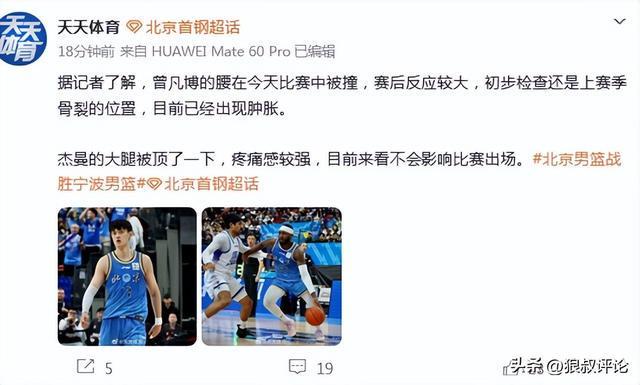 北京男篮目前遭到伤病困扰问题突出,除了曾凡博和杰曼本场比赛受伤外,国家队的核心后卫赵睿,以及内线周琦同样有伤在身。