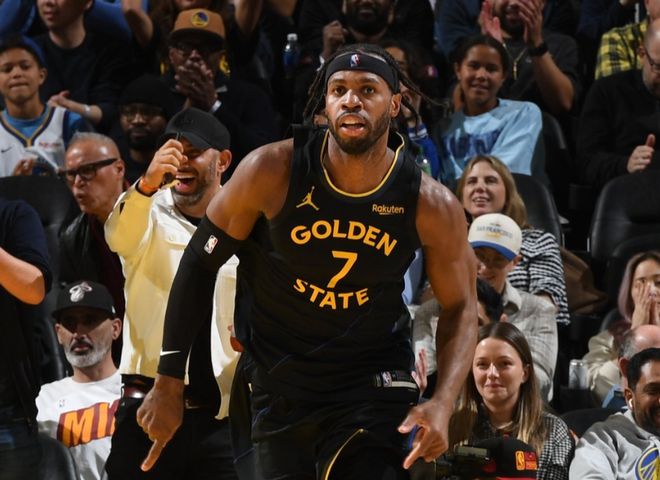 热火本赛季平均每48分钟能贡献104.1回合,节奏全联盟最快!显然,这对于库里和巴特勒这样的老将来说,不算好消息。赛前当勇士主场介绍维金斯时,嘴哥笑容满面依旧温暖,全场球迷欢呼,致以最高敬意。回顾一下比赛,本场格林因脚踝伤势休战,巴特勒则复出。开场维金斯补篮+拉松单打库里造杀伤,阿德巴约也造犯规,巴特勒空切上篮+翻身抛投+滑翔上篮,打老东家毫不手软!鲍威尔和维金斯接连单打,中段库里终于三分开张,但库里也对维金斯三分犯规。维金斯手感不错,带队拉开分差后,理查德和霍福德内外开花。