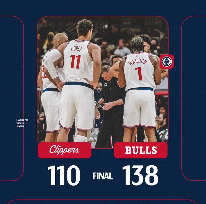 快船队在客场28分惨败公牛,这场比赛泰伦卢提前一节放弃比赛,哈登24分6助攻5篮板6失误,命中率只有36%,36岁的哈登体能明显不支,一波6连胜被终结后快船艰难的稳住了西部第十的位置,但只要输球就会掉出附加赛。