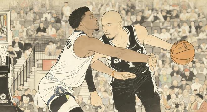 类似的事情发生在上一场,森林狼对阵马刺的比赛。那场比赛爱德华兹手感热到发烫,33投19中,三分线外16中9,砍下追平说生涯纪录的55分,但对方三人20+,凯尔登20分,福克斯25分12助攻,文班更是39分9篮板。