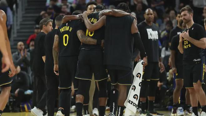 斯蒂芬-库里站在不远处,双手抱头,眼神里闪过一丝不愿相信的茫然;史蒂夫-科尔叫了暂停,面色凝重的像是预知了某种结局。场边的队医和工作人员心里都明白,有些东西可能就此结束了——不只是一场比赛,更是一个赛季的梦想,甚至是一个时代的最后希望。