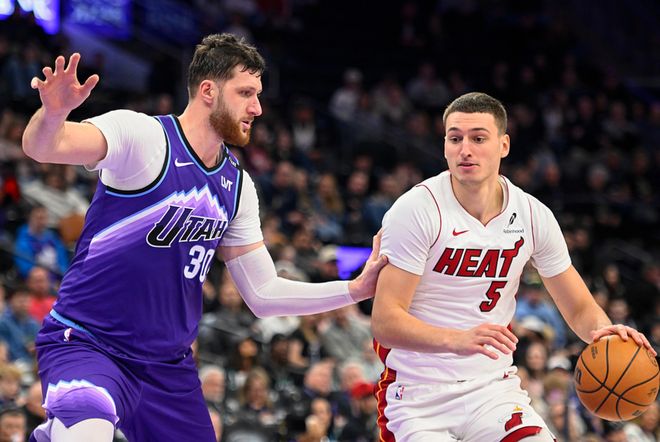 爵士主场迎战热火,爵士少了马尔卡宁、凯斯勒,热火少了希罗、米切尔、韦尔,首节比赛热火稍占上风,首节战罢领先1分,第二节热火完胜爵士,单节赢了20分,下半场比赛热火扩大优势,最终热火大胜爵士31分。阿德巴约19中8(三分10中4)得到26分15板2助,约维奇12中6(三分6中3)得到23分3板,拉松11中7(三分6中3)得到20分2板3助,威金斯12中6得到17分6板6助,爵士方面努尔基奇13中8得到17分10板12助,森萨博15中7(三分7中4)得到23分4板,乔治19中6得到19分2板5助2断。