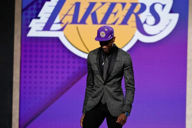 这笔交易最富戏剧性的一笔,在于亨特与湖人之间未尽的缘分。时间拨回2019年选秀大会,手握4号签的洛杉矶湖人队(这个签位随后在安东尼·戴维斯的交易中被送至鹈鹕,又辗转至老鹰)选中了来自弗吉尼亚大学的亨特。当亨特走上台时,他头上戴的是湖人队的帽子,身后大屏幕也是湖人标志。