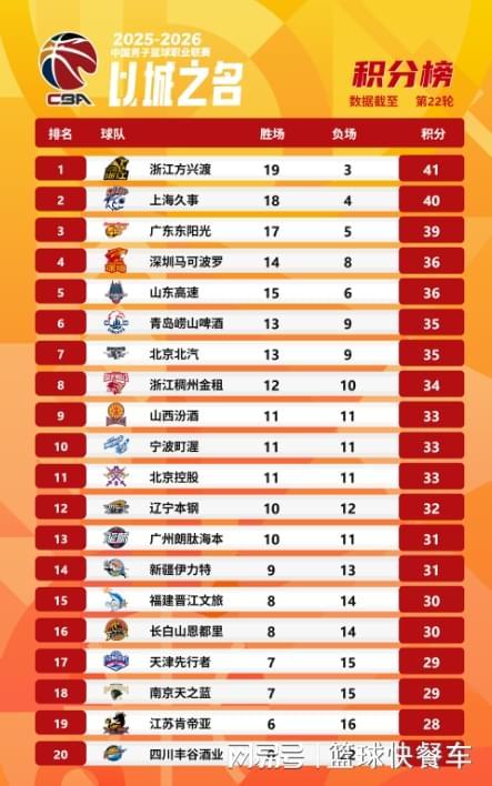 CBA常规赛第22轮全部战罢,广东、上海以及深圳等队先后出战。上海队这一轮比赛在主场以34分的巨大优势狂胜同曦队,成功将战绩提升到18胜4负,继续稳居积分榜第2。而11冠王广东队这一轮则爆冷输给了宁波队,继续排在积分榜第三名。深圳队这一轮大胜江苏队以后,他们则重新杀回积分榜第四名。而随着宁波、北控相继赢球,辽宁队又一次下滑到积分榜第12名。