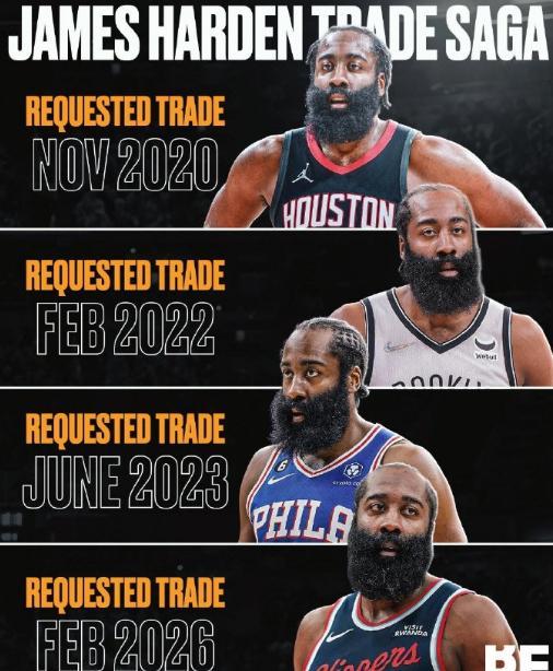NBA跑路第一人?哈登5年4次申请交易,就没有能让他满意的球队?