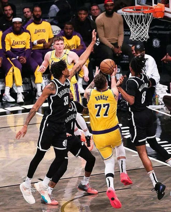 湖人:詹姆斯25分3板7助3断、东契奇24分6板5助、拉拉维亚18分5板、里夫斯15分4板1助2断、海斯9分1板2助、艾顿7分8板3助、范德比尔特6分5板3助、斯玛特6分3板1助