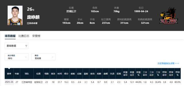 作为2025年CBA选秀探花,庞峥麟本被视作“潜力股”,如今却成为球队真正的引擎。在球队战绩起伏之际,他用一场场精准的传球、冷静的终结,扛起了江苏男篮的希望。