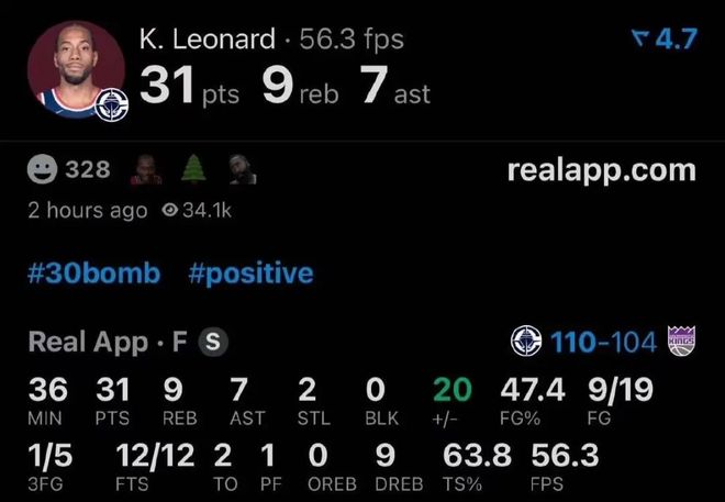 这是伦纳德连续30场20+,侵略性十足