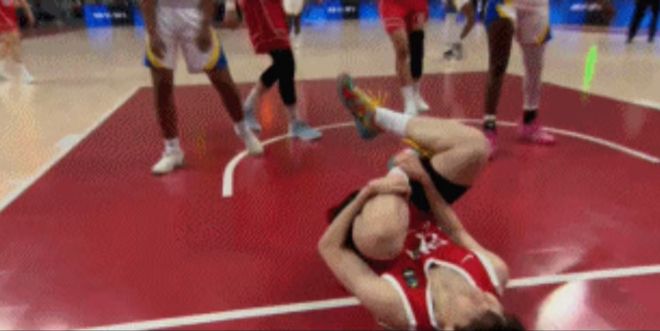 首节李星诺脚踝扭伤被搀扶下场。