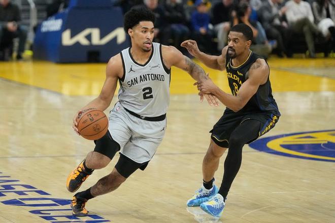 次节上来,穆迪三分再中,卡斯尔、文班、布莱恩特打出6-0攻击波,波斯特连砍5分回应,两队再度围绕10分分差展开拉锯战,节中文班、卡斯尔一度连得6分追平,勇士多点开花总能给出回应,好在节末福克斯、哈珀先后发威,加上瓦塞尔制造三分犯规,半场战罢马刺63-67将分差缩小至4分。