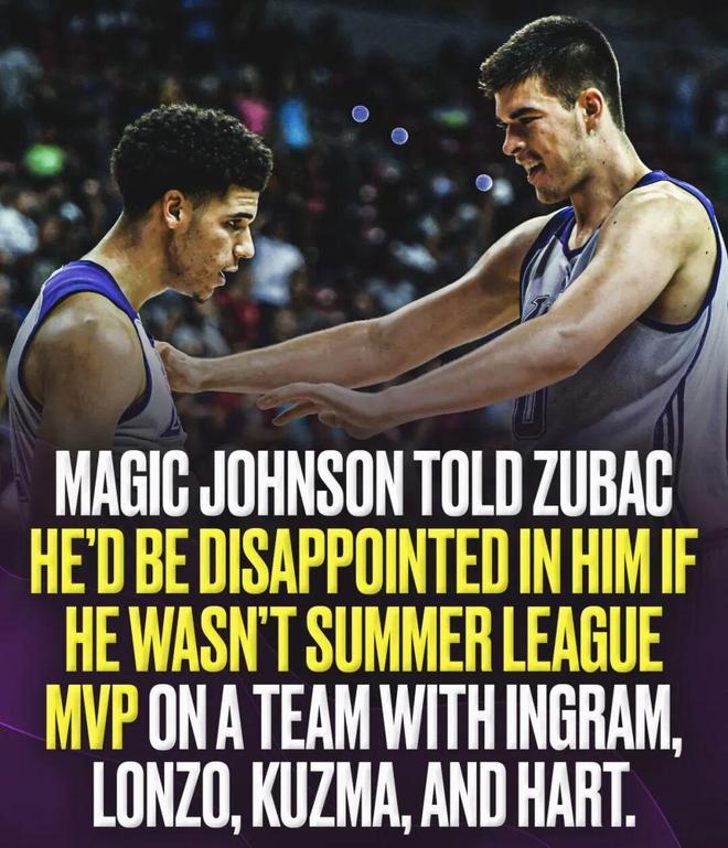 2、在被选中后,魔术师曾告诉祖巴茨,如果他没有拿到夏季联赛MVP,他会让魔术师感到失望,而在当时,湖人阵容中还有英格拉姆、鲍尔、库兹马、哈特;