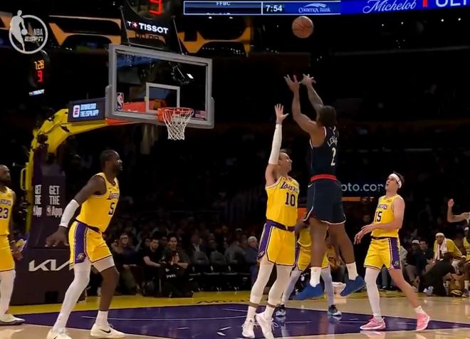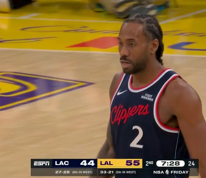 首节湖人将伦纳德防的很死,他首节只有1次出手拿到2分3助攻,但第二节两队进入轮换后伦纳德就完全不同了,因为在他身前的防守者变成肯纳德、八村垒之流,他在短短4分钟里连拿11分。