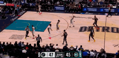 坎宁安转身过掉瓦塞尔后,篮下直面文班,一个胆大心细的高抛投,直接吃了文班亚马一个变态辣的火锅