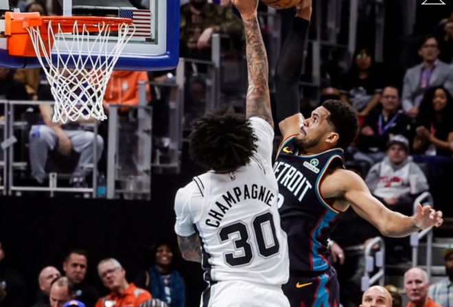 正处于五连胜的活塞,在这一个比赛日,迎来了一场硬仗,坐镇主场小凯撒竞技场,对阵圣安东尼奥马刺,本场比赛活塞用出色的整体防守,限制住了马刺双核文班亚马和福克斯,但核心坎宁安的哑火,以及马刺神射瓦塞尔的神勇发挥,让东部第一在主场以103-114吞下了失利的苦果。