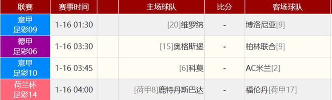 其他赛事比分:
