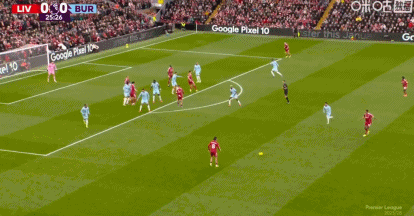 半场:利物浦1-0伯恩利,维尔茨爆杆破门,索博斯洛伊失点