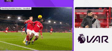第81分钟,埃纳禁区内疑似手球,VAR示意不是点球。