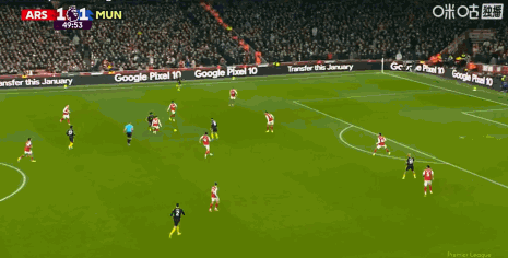 比赛第50分钟,多古和B费在前场连续配合后禁区外起脚爆射,皮球击中横梁后弹入球门,曼联取得了2-1领先。