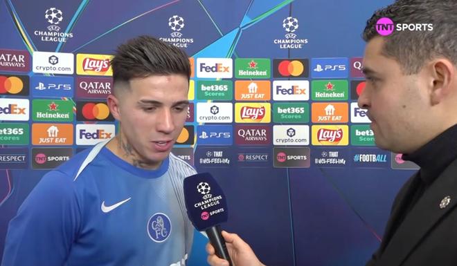 欧冠联赛阶段第8轮,切尔西客场3-2战胜那不勒斯,切尔西中场恩佐赛后接受了TNT体育墨西哥频道的采访。
