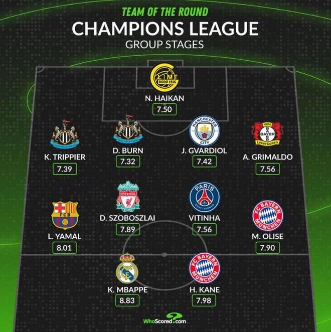 伴随着欧冠联赛阶段战罢,权威数据网站Whoscored评选出了一份瑞士轮联赛阶段场均评分最高的阵容。该数据网站致力于赛后球员评分,所参考的数据是综合性的,因此这套最佳阵容非常的合理。