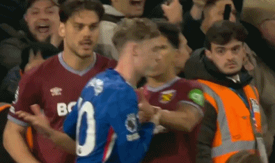 冲突中,西汉姆联后卫托迪博上来锁喉佩德罗,中途希腊国脚马夫罗帕诺斯还一巴掌想扇帕尔默,庆幸的是帕尔默反应敏捷迅速躲开,才免遭对手偷袭。而佩德罗再次为队友出头,怒推马夫罗帕诺斯。