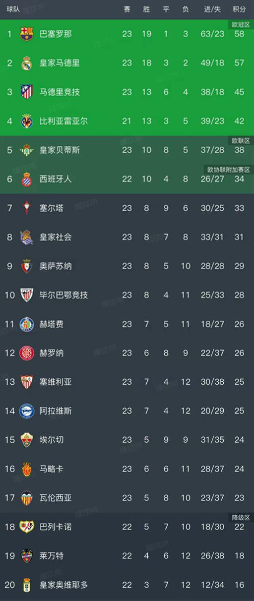 随着皇马2-0、马竞爆冷0-1,西甲最新排名出炉!巴萨58分领跑