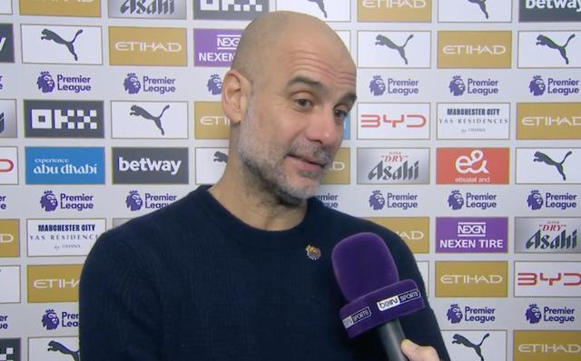 英超第26轮,曼城主场3-0击败富勒姆,赛后,曼城主帅瓜迪奥拉接受了拜因体育的采访。