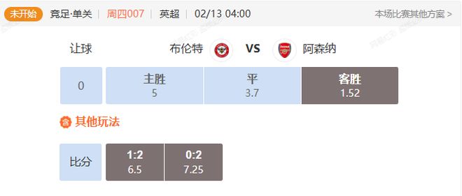 布伦特福德居英超第7,近2轮连胜。阿森纳居第一,近4场赛事连胜、近17场赛事仅输一场,联赛杯闯入决赛,将对阵曼城。本赛季布伦特福德客场0比2负于阿森纳,近9次对阵阿森纳不胜。