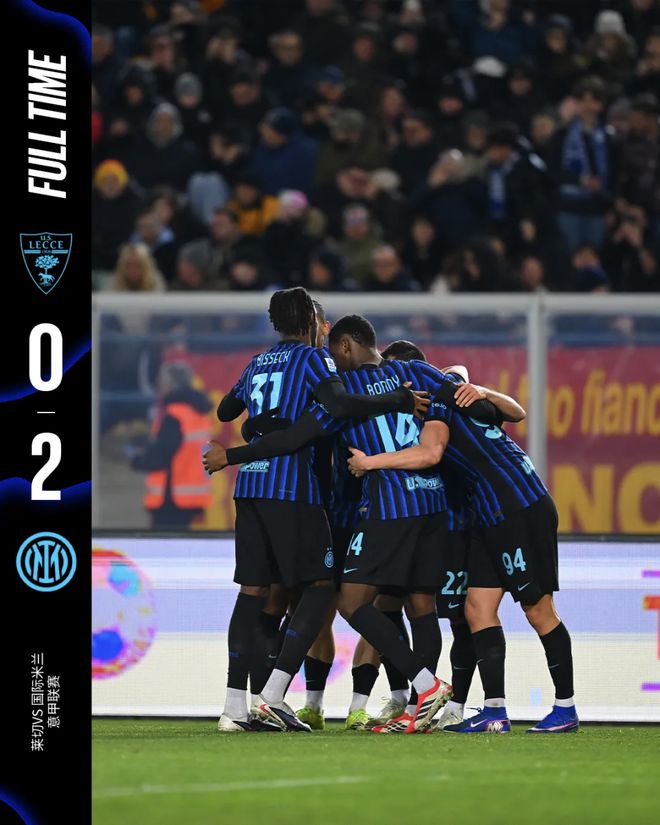 国际米兰延续着本赛季意甲虐菜大师风范,客场2比0击败莱切豪取意甲7连胜,蓝黑军团目前在多赛一轮的情况下,在意甲积分榜上建立起10分的领先优势。