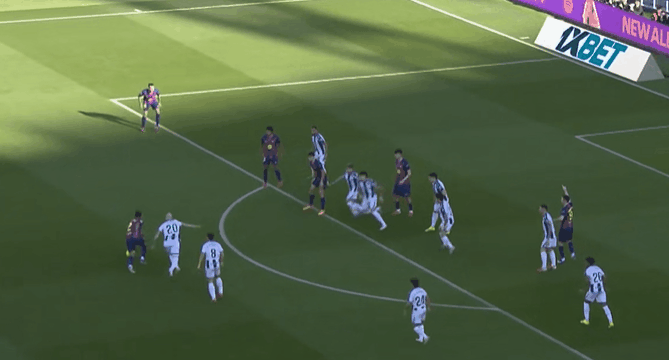 整个上半场,强大的巴塞罗那完全控制住了局面,无论是控球还是创造威胁的次数,都要远远优于莱万特。并且这种较大的优势,转换成了得分。