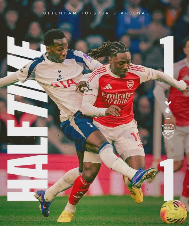 阿森纳在上半场有12脚射门,是Opta在2023年数据统计以来,英超北伦敦德比上半场射门最多的一次。