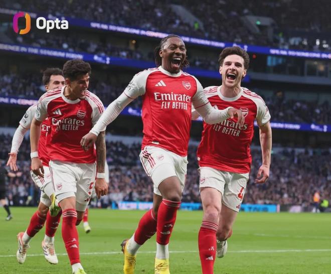Opta统计,只有皮雷(7)和阿德巴约(6)在英超比赛中代表阿森纳对热刺时比埃泽(5)进球更多,埃泽的北伦敦德比联赛进球数已经追平了亨利和范佩西。
