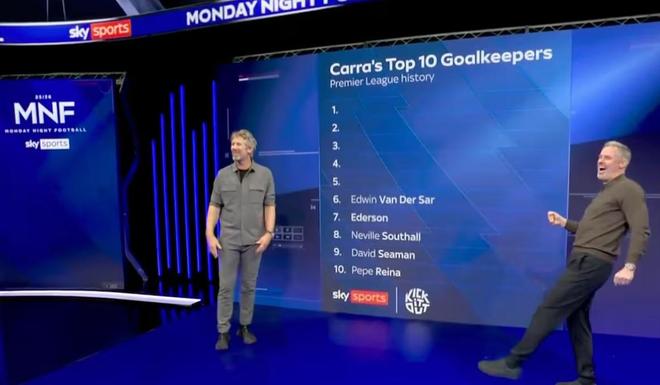杰米-卡拉格在评选英超历史前五门将时,没有将埃德温-范德萨列入其中,后者在天空体育演播室直接点出此事,卡拉格也只能当场连连道歉。卡拉格将切赫排在第一,他表示切赫在欧冠决赛对阵拜仁慕尼黑的表现太令人印象深刻了,那天晚上他就在现场,另外,卡拉格还将德赫亚排在了第四,库尔图瓦排在第五,他在切尔西仅用四年就两次夺得英超冠军,卡拉格将阿利松排名第三。