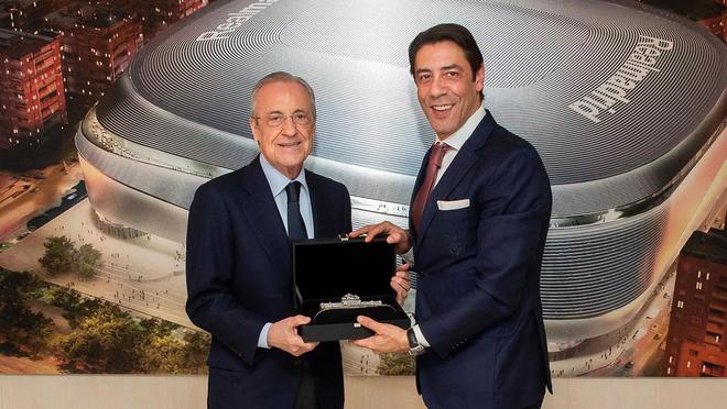 据皇马官网消息,在这场比赛赛前,皇家马德里主席弗洛伦蒂诺-佩雷斯与本菲卡主席鲁伊-科斯塔交换了礼物,该仪式在伯纳乌球场的贵宾包厢内举行。