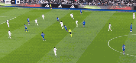 第39分钟,赫塔费右路传中,吕迪格解围不远,阿兰巴里头球摆渡,萨特里亚诺在禁区外迎球凌空轰出一记世界波破门,皇马0-1落后,意外来得就是这么的突然。